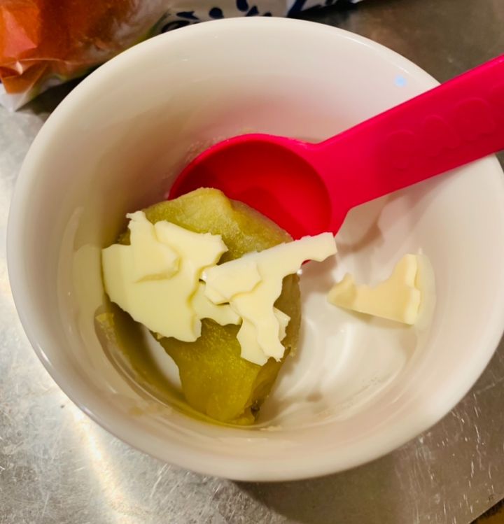 野菜不足が気になる時には、茹でたほうれん草を刻んでさつまいもに入れたりもします(^○^)