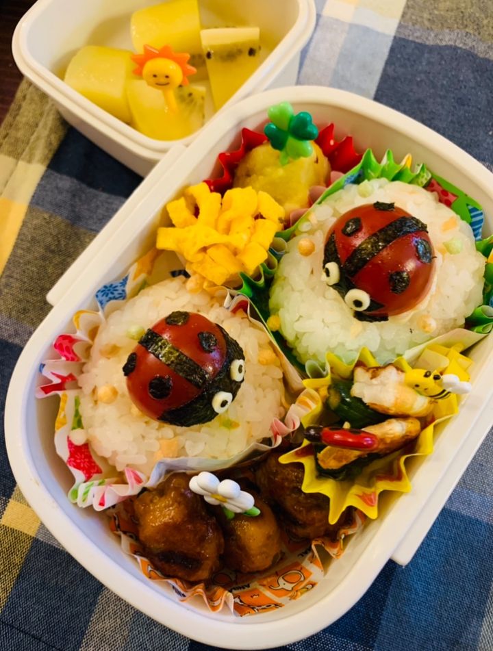 幼稚園児は、可愛くデコって詰めています