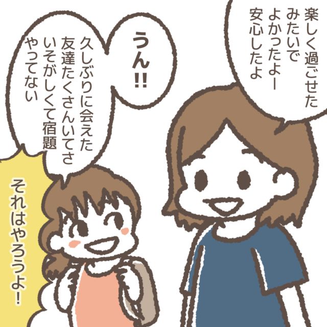 「うん!!久しぶりに会えた友達たくさんいてさ、いそがしくて宿題やってない」