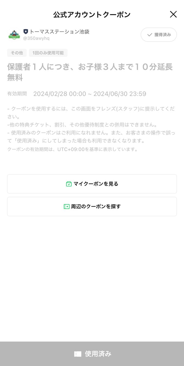 使用済みですが、こちらがLINEクーポンです!