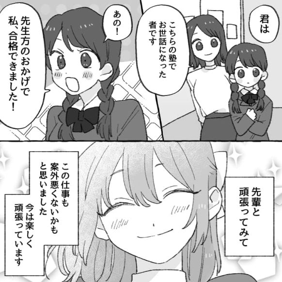 主人公は、特にやりたいことがなかったので、大学卒業後にバイトの経験がある塾業界に就職しました。