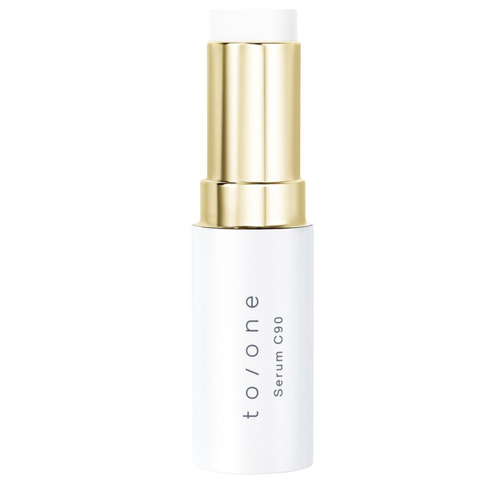 「乾燥により皮脂が出て崩れた部分にバームを指に取り優しくなじませて。コンシーラーの下に仕込むのもおすすめ」ビタミンCを90%配合のスティック美容液。¥4,950(to/one)