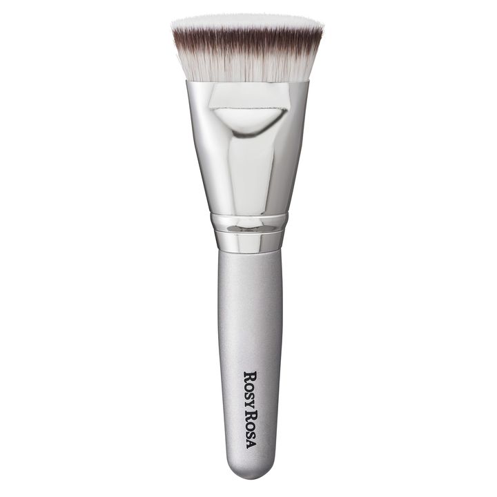 「ポイント塗りも全体に広げるのも楽々。リキッド系はブラシの面を顔に沿わせて、クルクルと円を描くように塗った後、手で軽く押さえると密着感がUP」¥748(ロージーローザ)