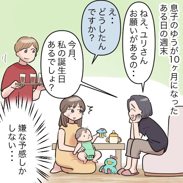3. [9]義母の誕生日のお願いは「孫と二人きりで過ごさせて!」私は義母アレルギー|ママ広場マンガ