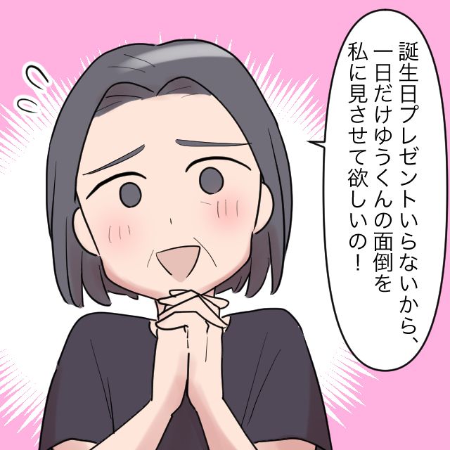 「誕生日プレゼントはいらないから、一日だけゆうくんの面倒を見させて欲しいの!」