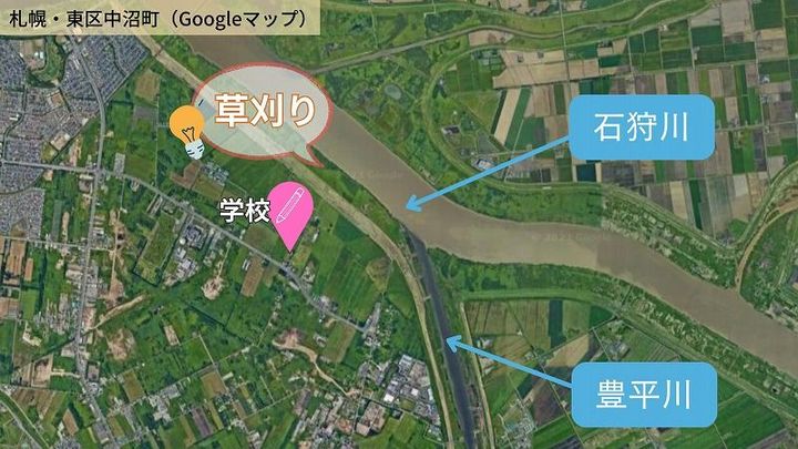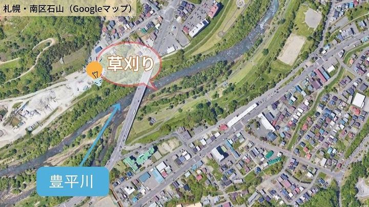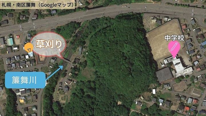 そのクマが駆除された、2週間ほど後、札幌市は、ここ野々沢川で札幌藻岩高校と協力して草刈りをしました。
