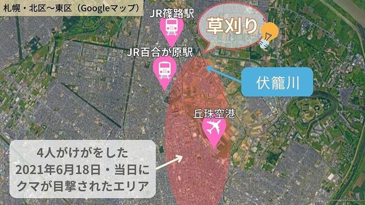 2021年6月、札幌市東区の住宅地にクマが現れ、4人がけがをした事故。
