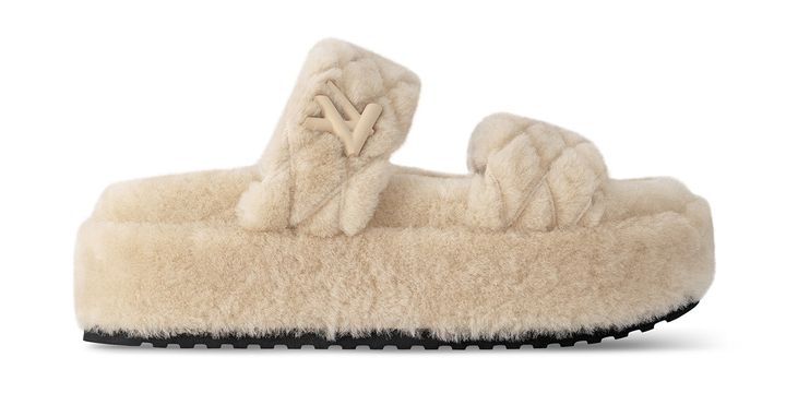 全体をシアリングでカバーし、ふんわりとした見た目と柔らかな肌触りが魅力の「LV サンセット・ライン ミュール」。