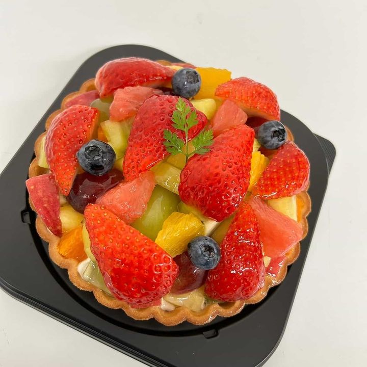 まるで専門店レベルの美しい「12種類のフルーツタルト」は、12種類の生のフルーツをたっぷり使った贅沢なデザート。メインのフルーツは冬~夏は地元産いちご、夏は地元産の桃、秋は地元産和梨、柿、洋梨、ぶどうなど、地元のフルーツをたっぷり使用した名物商品です。