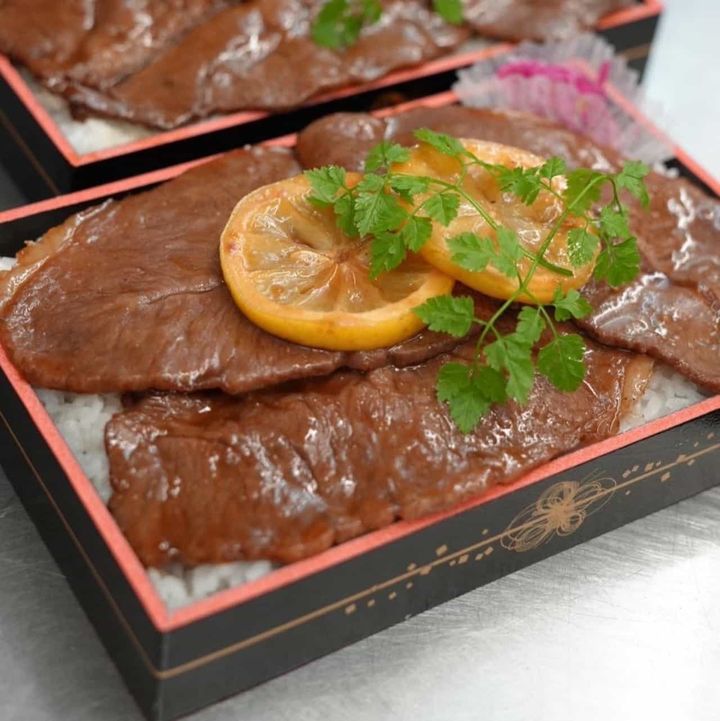 「九州産牛肉を贅沢に使ったレモンステーキ重」は、さっぱりと食べられるレモンステーキ重です。ダイキョー精肉部が仕入れた九州産牛肉を使用し、ひらりと柔らかな肉をアツアツの鉄板で焼き上げました。