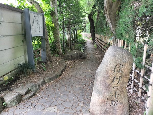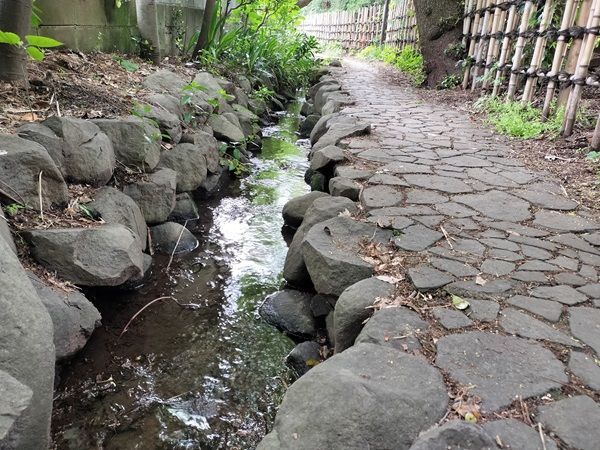 美術の森緑地を出るとすぐに「はけの小路」と呼ばれる、せせらぎ沿いの道があります。 森の外にも趣のある散歩道が続いていました。