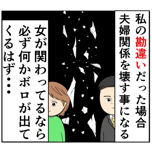 「私の勘違いだった場合、夫婦関係を壊す事になる。女が関わってるなら必ず何かボロが出てくるはず・・・」