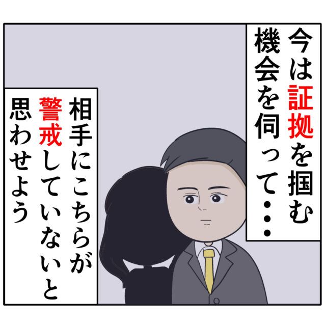 「今は証拠を掴む機会を伺って・・・相手にこちらが警戒していないと思わせよう」