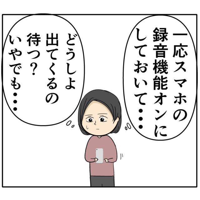 (一応スマホの録音機能オンにしておいて・・・どうしよ。出てくるの待つ?いやでも・・・)