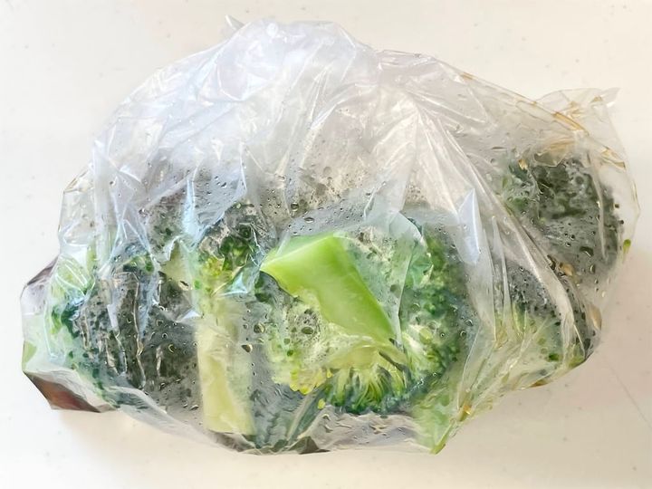 ブロッコリーは小房に分け、600Wの電子レンジで2分30秒加熱します。