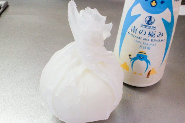 出来るだけ新玉ねぎにクッキングシートが密着するように包んでくださいね。