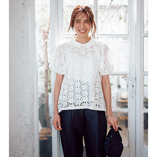 3. 大人の【レースブラウス】は小襟デザインできちんと感UP!