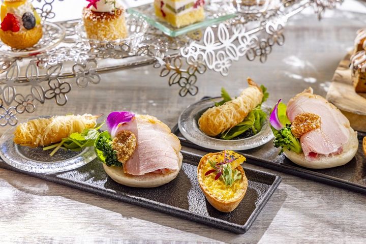 セイボリーは、マスタードとキャラメルの風味が合わさり食欲をそそるジャンボンブラン(豚のボイルハム)や極細のパスタ「カダイフ」で包んだガーリックシュリンプなど、ひとつひとつにこだわりが詰まっています。