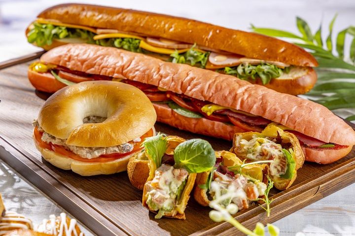 プレーンスコーン、チョコチップスコーン(コーヒー風味)、サンドイッチ4種。