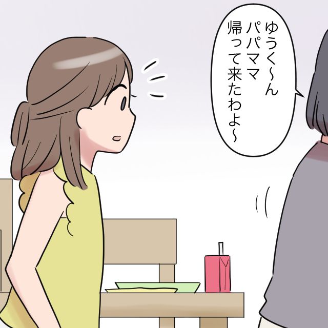 「ゆうく~ん、パパとママ帰って来たわよ~」