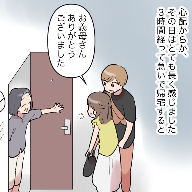 心配していたせいか、この日は時間が経つのがとても遅いと感じたユリさん、3時間が経った後急いで帰宅すると、
