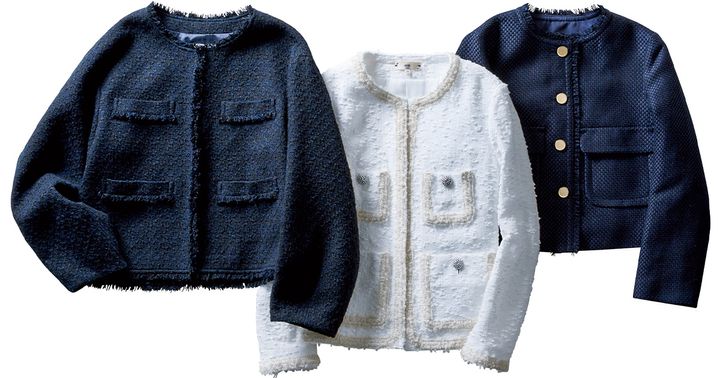 リッチな生地、美しいシルエット、繊細なディテール…、こだわりの詰まったツイードに定評のあるブランドの1着なら、トレンドの太デニムも上品にまとまる!短か丈でバランスよく着こなせます。ボタンを留めずにラフに羽織るのも気分!