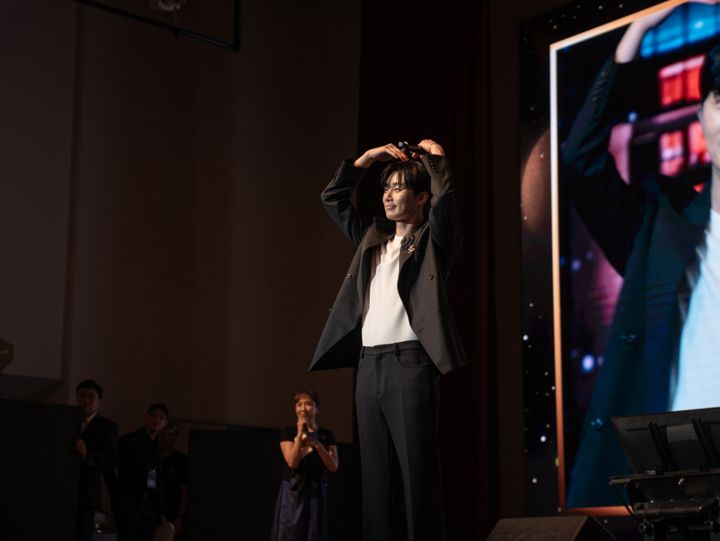 その後も、本人も間違えてしまうほどマニアックなパク・ソジュンさんについてのクイズ大会が行われるなど、イベントは大盛り上がり。パラダイスシティの7周年をお祝いする大きなケーキが登場すると、「ナイフを入れるのが少し怖いです」と緊張しながらケーキ入刀。ご本人もファンも楽しめるコンテンツでファンとの絆を深めていました。
