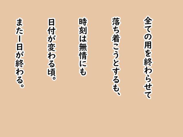 全ての用を終わらせて落ち着こうとするも、時刻は無情にも日付が変わる頃。