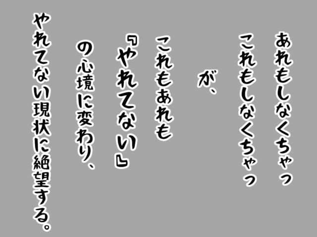 これもあれも『やれてない』の心境に変わり、やれてない現状に絶望する・・。