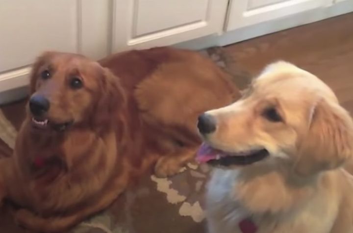 3. 「え、消えちゃった!?」おでこに乗ったオヤツに気づかないワンコ。