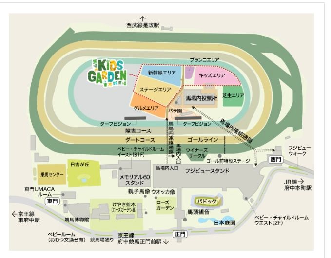 競馬場内のMAPです。馬上内がキッズガーデンという子供向けエリアになっています♪