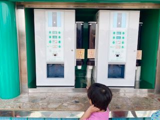 無料の紙コップが設置してあり、冷たいお茶、温かいお茶、お水やお湯もあるので、