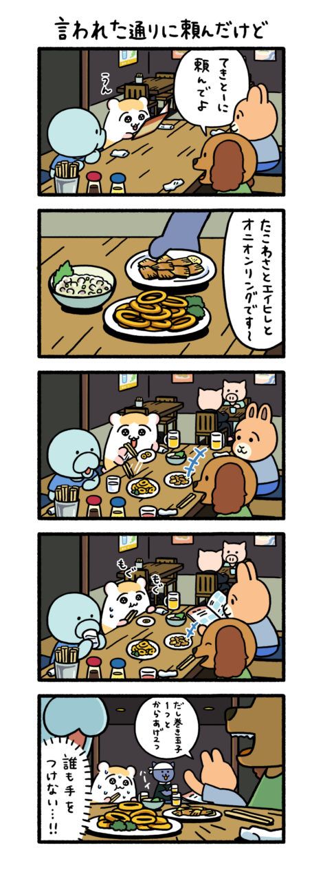 東京で一人暮らしをしているハムスター。床の薄い家に住んでいて、甘いものとビールが好き。何故かかわいそうな目に遭うことが多い。