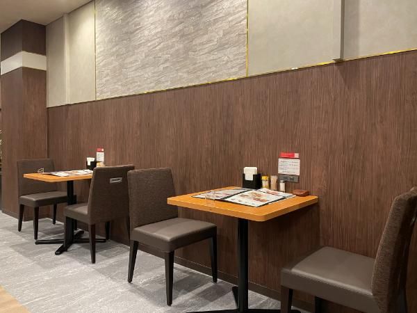 開店して間もなく入店しました。ブラウン基調で落ち着いた雰囲気です。 広い席ありますよ~♪と広々としたしきりのある席に座らせていただきました。
