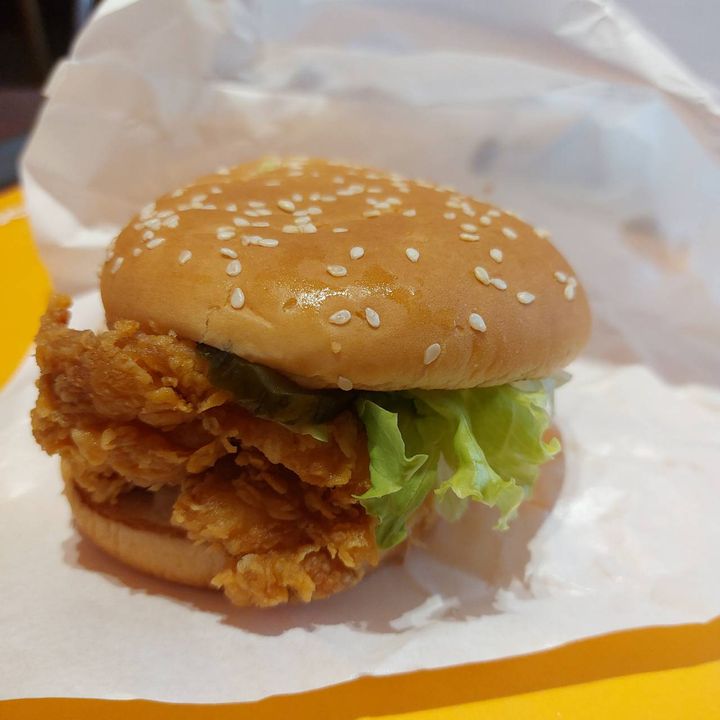 やや大きめのバンズにレタス、ピクルス、玉ねぎ、揚げたチキン、ソ-スがたっぷり入っていました。