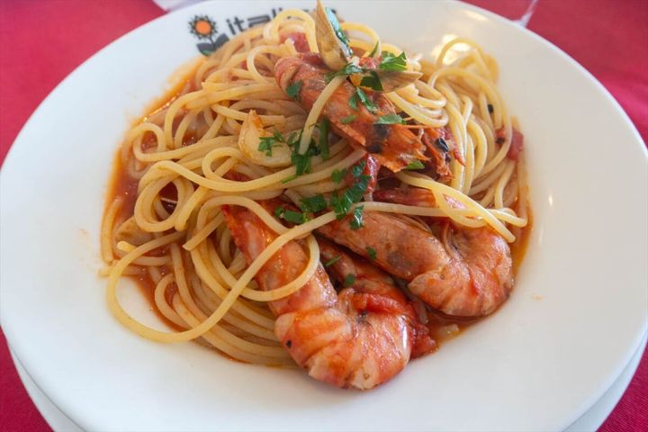 「イタリコ」の『石垣島産車えびのスパゲティ』(石垣市崎枝)