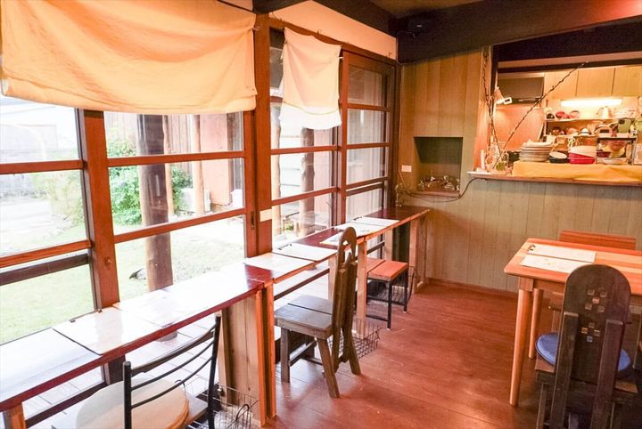 テーブル席の奥にはテラス席があり、海を眺めながら食事も楽しめます。市街地から少し離れて、のんびりランチ楽しみたい人は要チェックですよ。