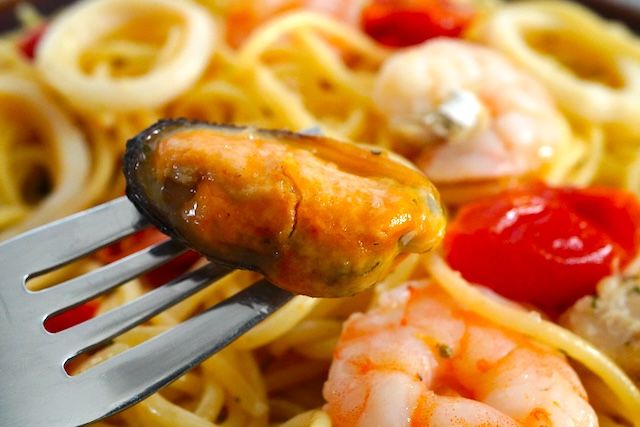 「スパゲッティ アッロ スコリオ」はカンパーニャ州のナポリをはじめとする色々な魚介類が主役のパスタ料理。