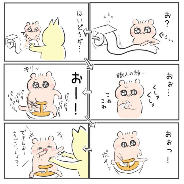 トイレットペーパーを自分でカラカラと出すいもたん。