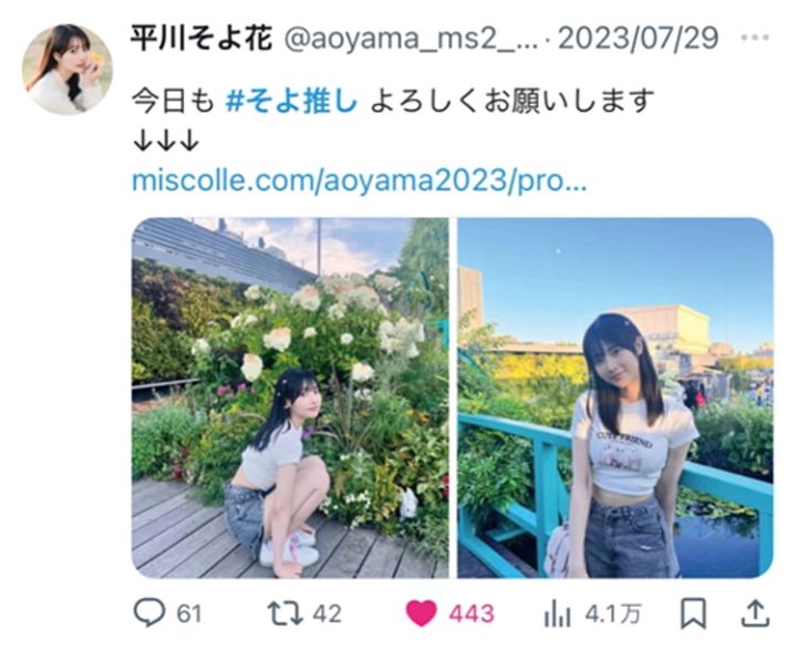 ミスコンの投票をもっとしてもらいたくて、投票ボタンを「押す」と「推す」をかけて「#そよ推し」という合言葉をX内で作りました。拡散力もファンとの一体感も高まりました!