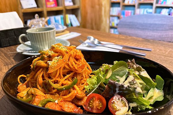 サラダ付きでしっかりお腹いっぱい!「あくまで読書を楽しんでほしいので、メニューに力をいれているわけではないんですが…」とおっしゃっていましたが、とっても美味しかったです(*^_^*)