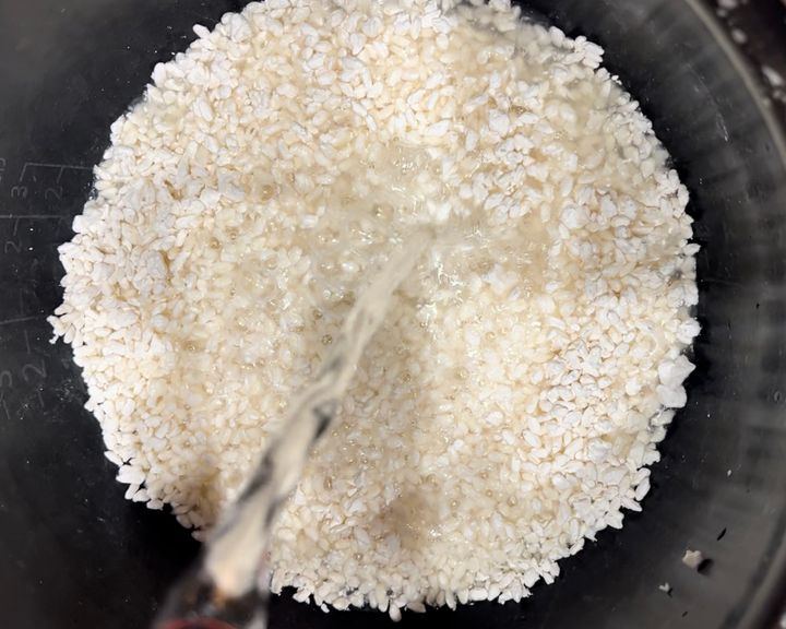 お湯(55-60度)を米麹が浸かるくらい入れる。