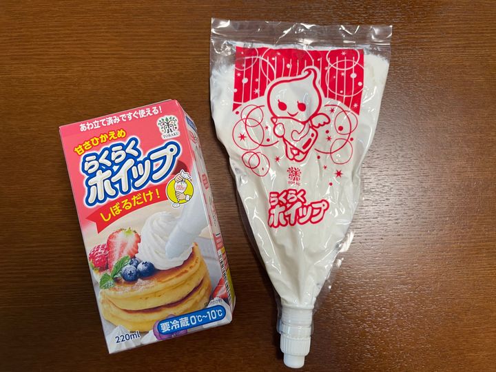 ⑵グラスに注ぎ、ホイップクリームをのせる。