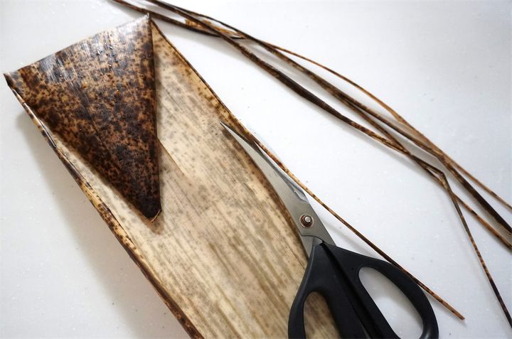 ・竹の皮を切ってひもを5本作る。