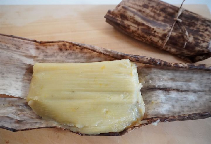 できたても味見したかったのですが、温かいと生地がベタついて竹の皮から取れないので、冷めるまで我慢...。