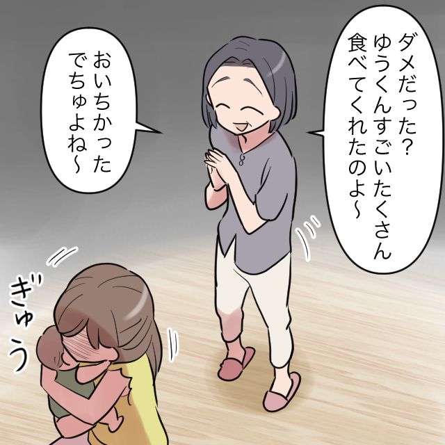 「あらダメだった?ゆうくん、すごいたくさん食べてくれたのよ~。ゆうくんおいちかったでちゅよね~」