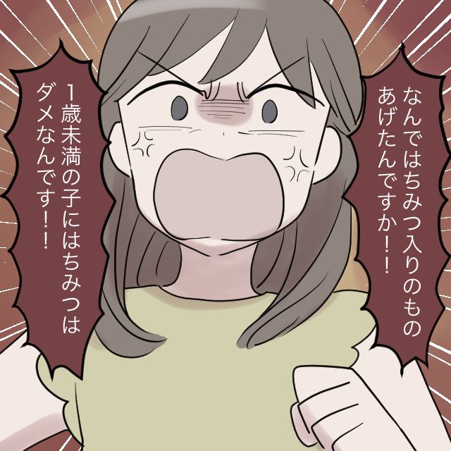 「なんでハチミツ入りのものをあげたんですか!!1歳未満の子にハチミツはダメなんです!!」