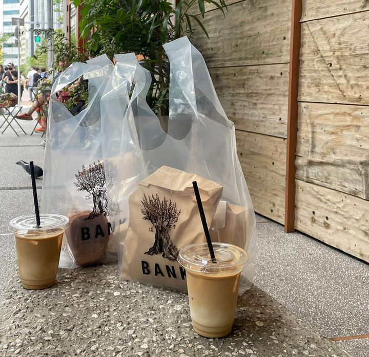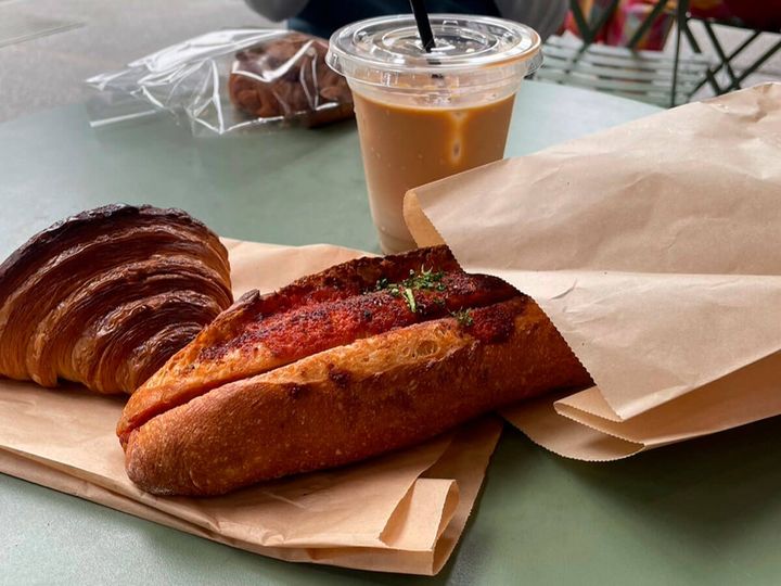 私は「明太フランス」と「クロワッサン」をいただきました。ここのベーカリーのクロワッサンは絶品なのでぜひ注文してほしいです♡ 土日はいつも並んでいるので、時間に余裕を持って行くのがおすすめです。パン屋さんにはテラス席も用意されているので、今の時期にぴったり♡