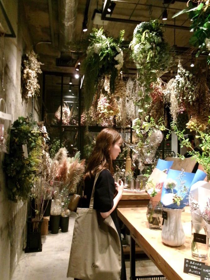 そして地下1階にはフラワーショップ「fete」があります。生花とドライフラワーがそろうショップで、ドライフラワーを使用したオリジナルのキャンドルやアロマなども販売しています。