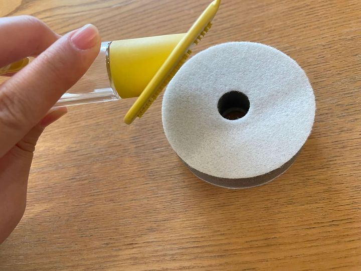 本体をスポンジに押し当てると、すぐにピタッとくっつきました。